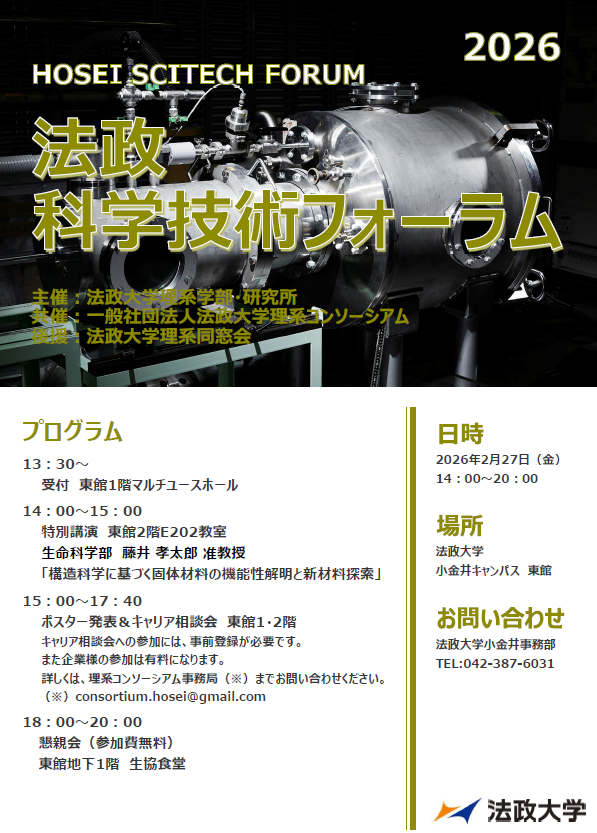 法政大学の理系大学院・学部・研究所に所属する学生が自身の研究内容とその成果を紹介する「法政科学技術フォーラム2026」を、