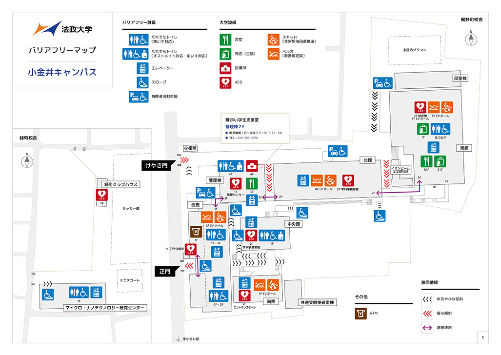 a.点字ブロック:BT、外濠校舎 1階、大学院棟、富士見ゲート、大内山校舎、法科大学院棟
