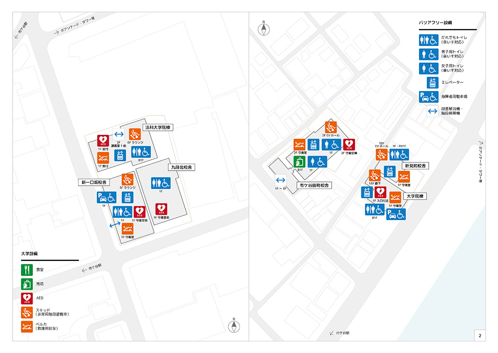 法科大学院棟 地下1階(男女兼用1)、九段北校舎 1階(男女兼用1)、新一口坂校舎 1階(男女兼用1)