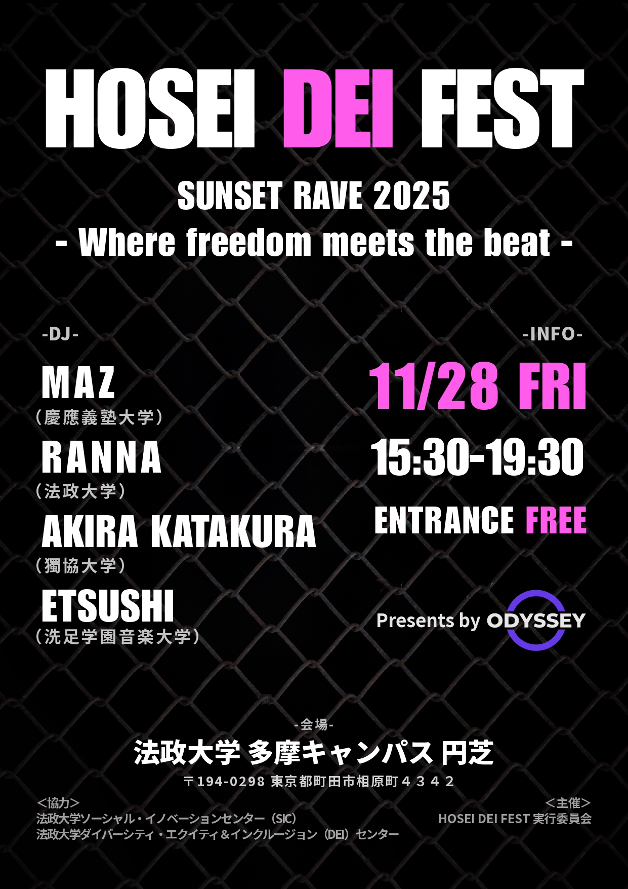 2025年11月28日(金)に、法政大学多摩キャンパスの円芝を会場に、学生有志によるDEI推進のための野外音楽イベントを開催いたします。