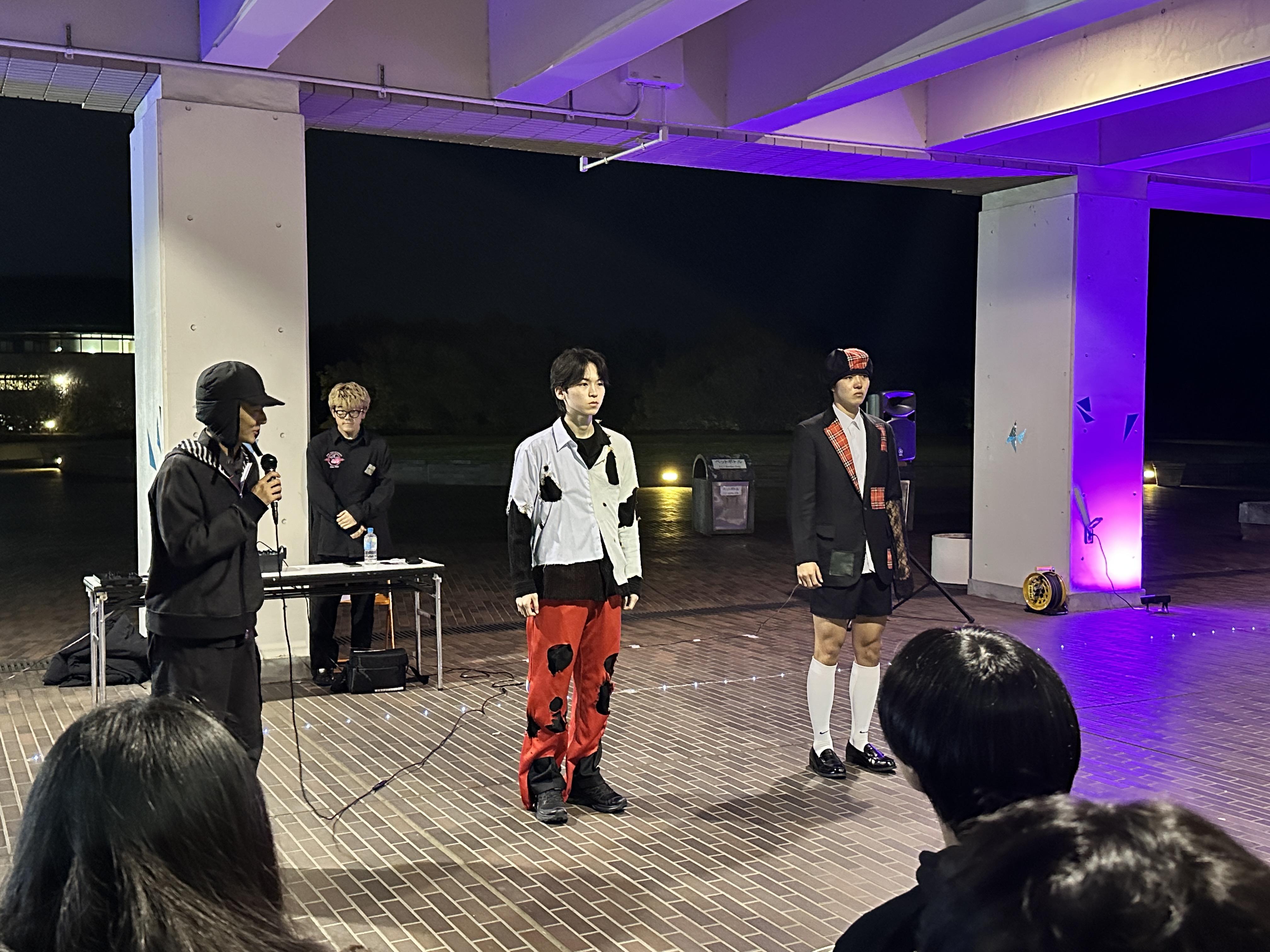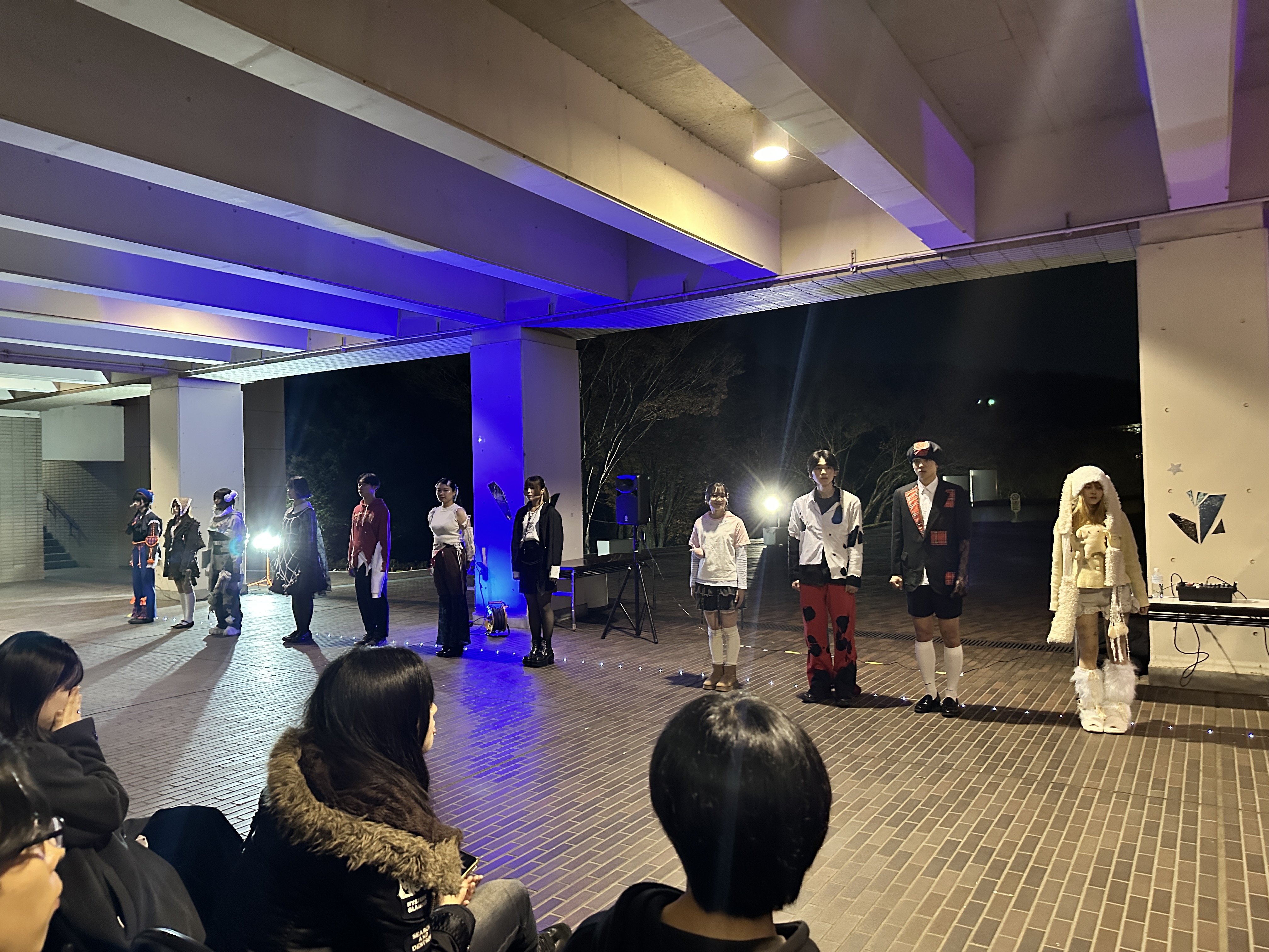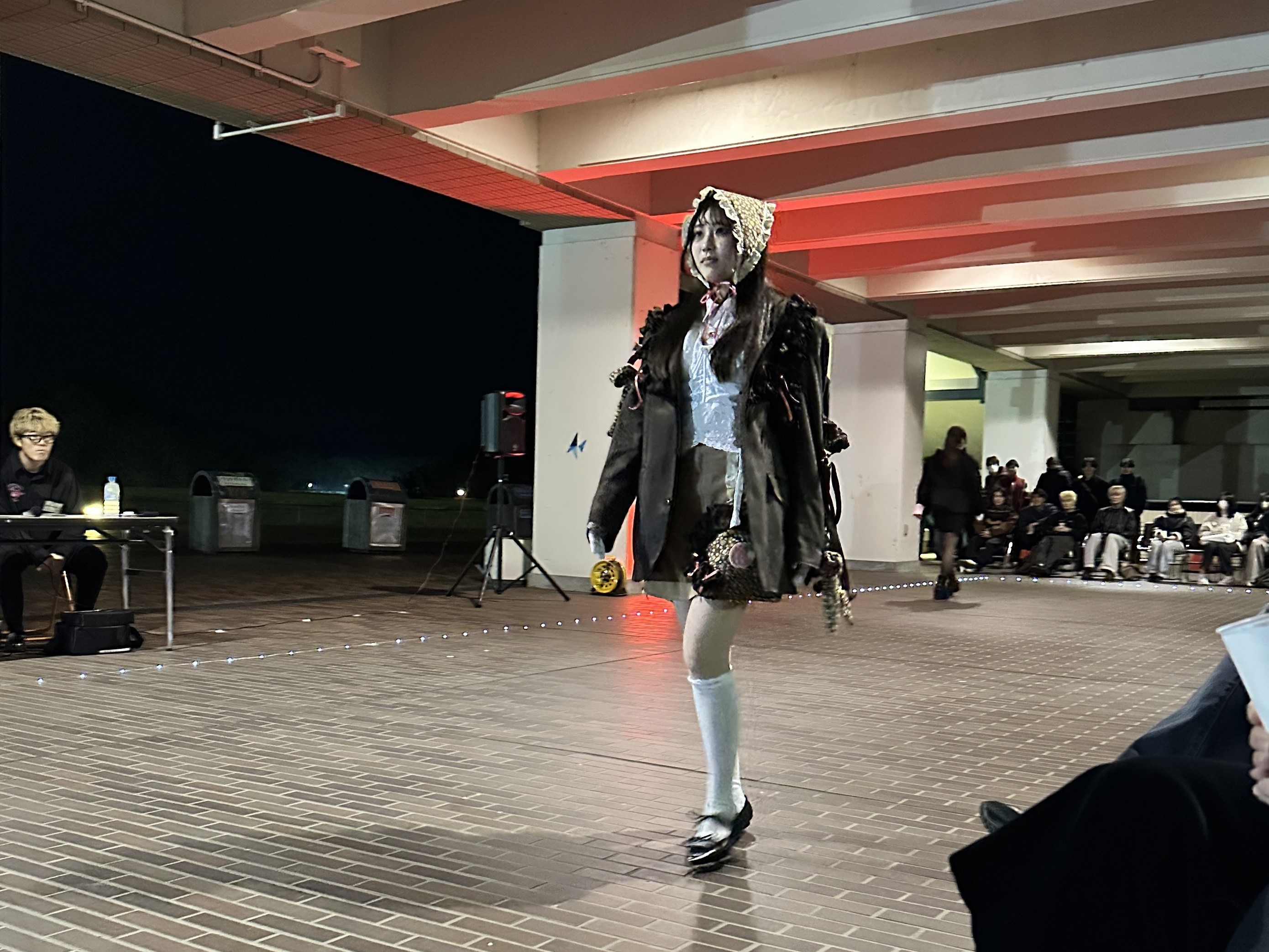 このファッションショーは、キャンパスが夜の雰囲気に変わる1時間帯に開催されるイベントです。学生だけでなく、近隣地域の方々にもご参加いただき、80名以上の観衆を集めて盛大に開催されました。