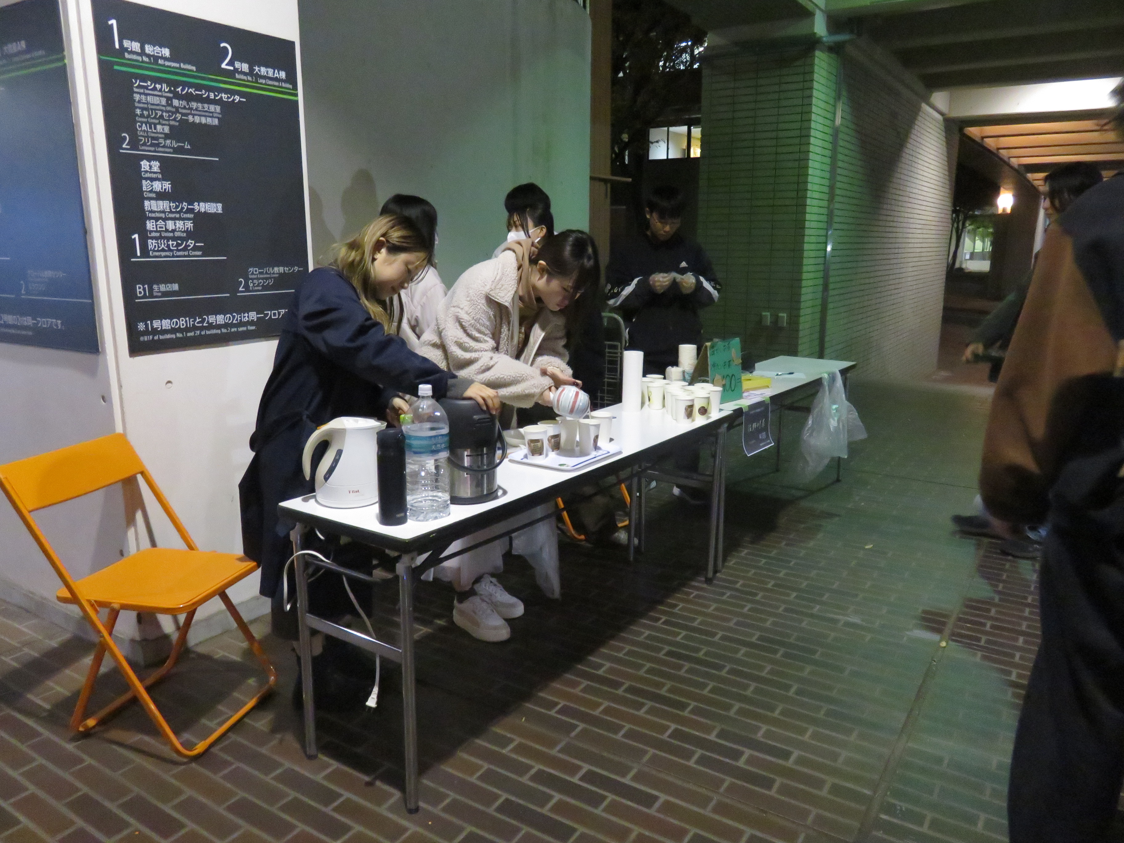 また、今回のファッションショーでは、SIC内の学生PJ「佐野川プロジェクト」と連携し、温かい佐野川茶の販売も行われました。