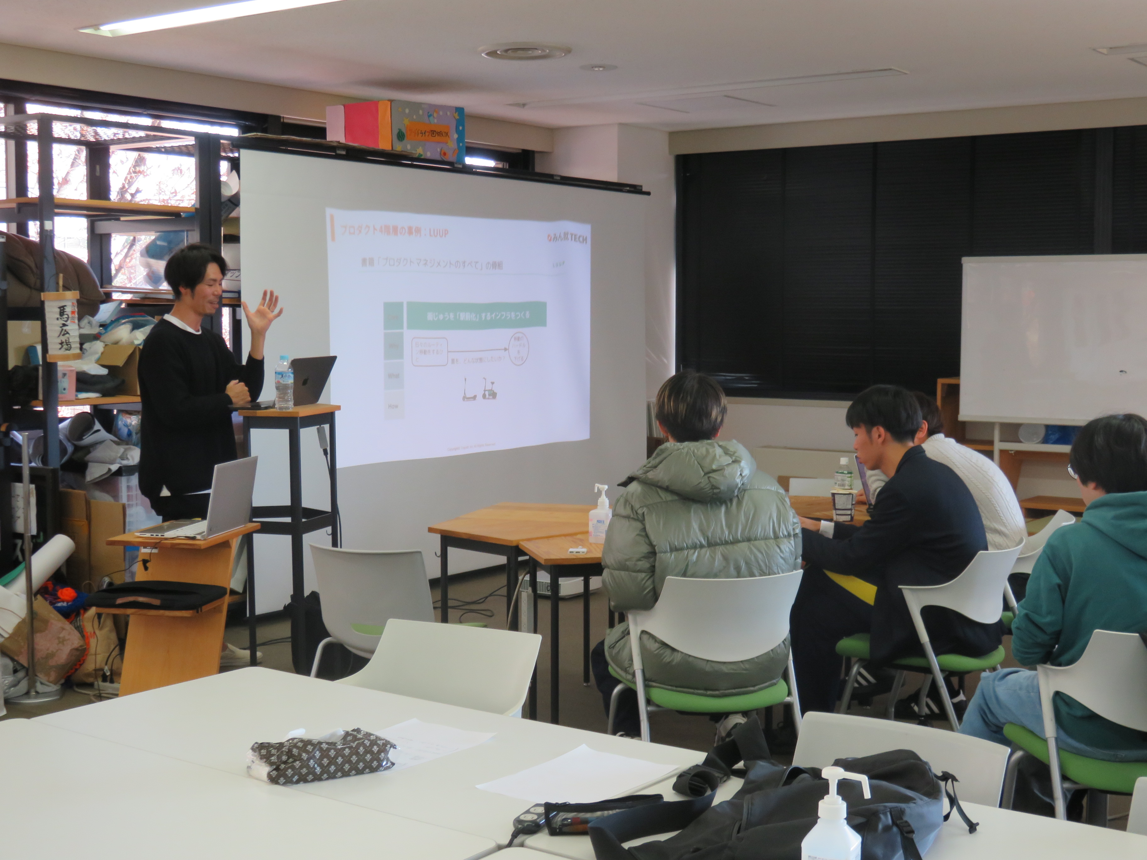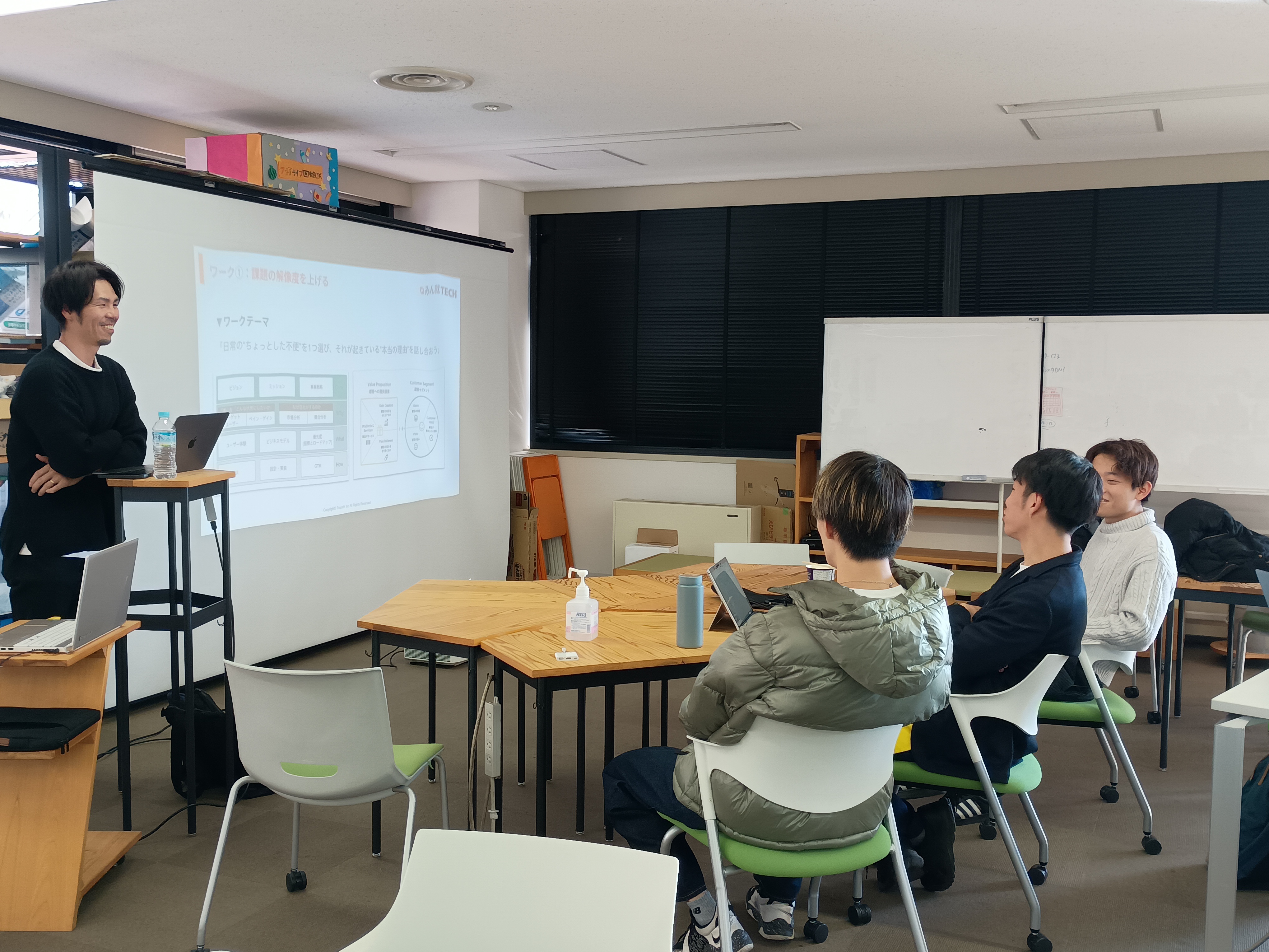 学校向けのシステム開発やキャリア支援会社で事業や組織開発を行ってきた八木氏からの具体例を用いたレクチャーや、ワークショップも交えながら、アイデアを形にするための道筋や、そのための組織(仲間)の作り方などについて学ぶことができました。