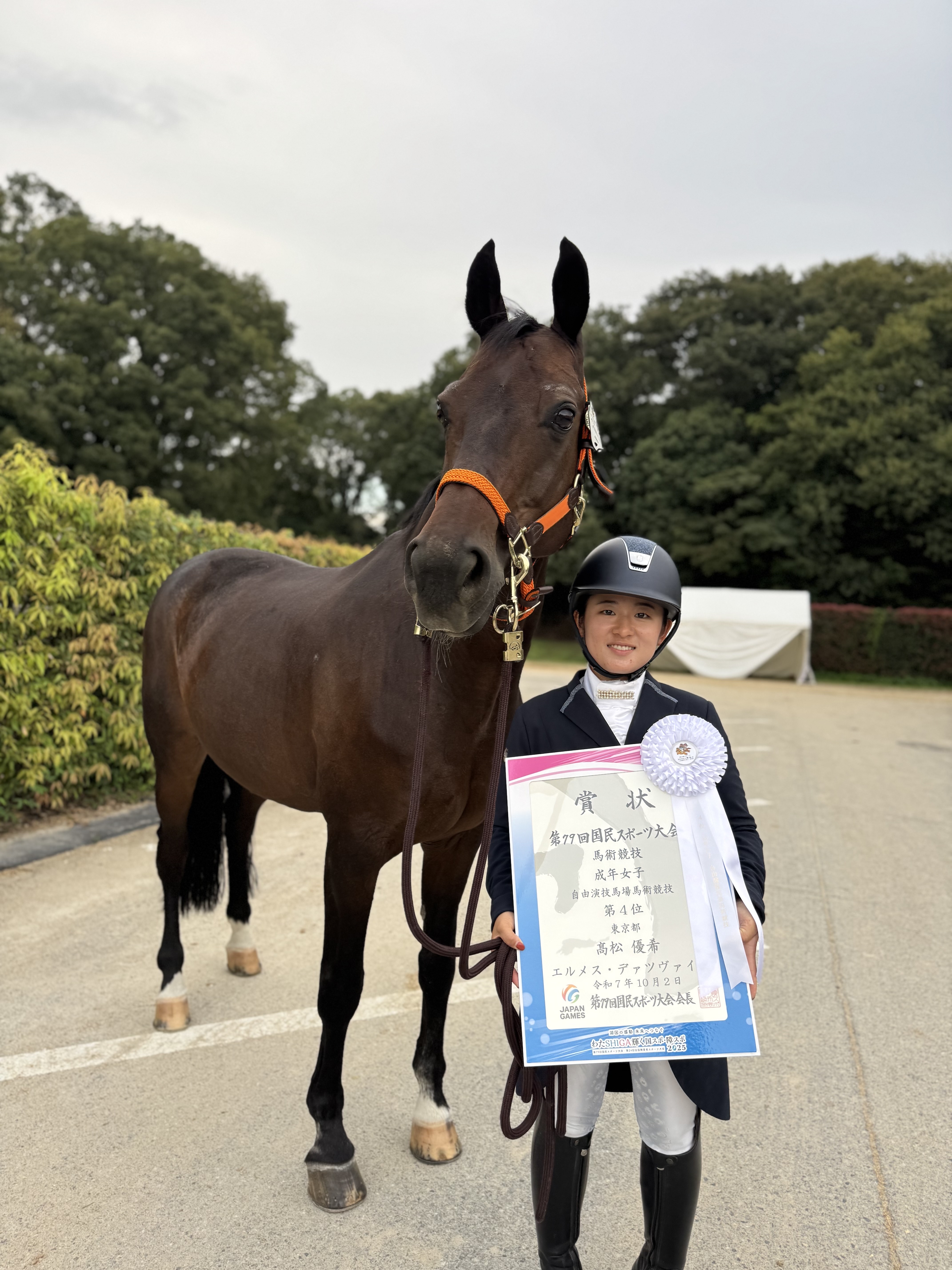 国民スポーツ大会で4位入賞を果たした髙松さんと愛馬エルメス・デァツヴァイタ