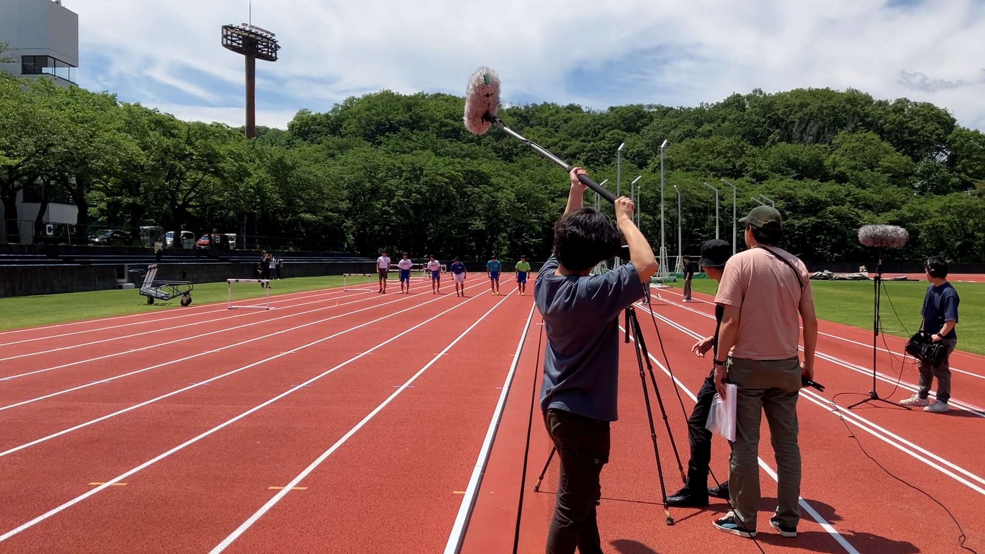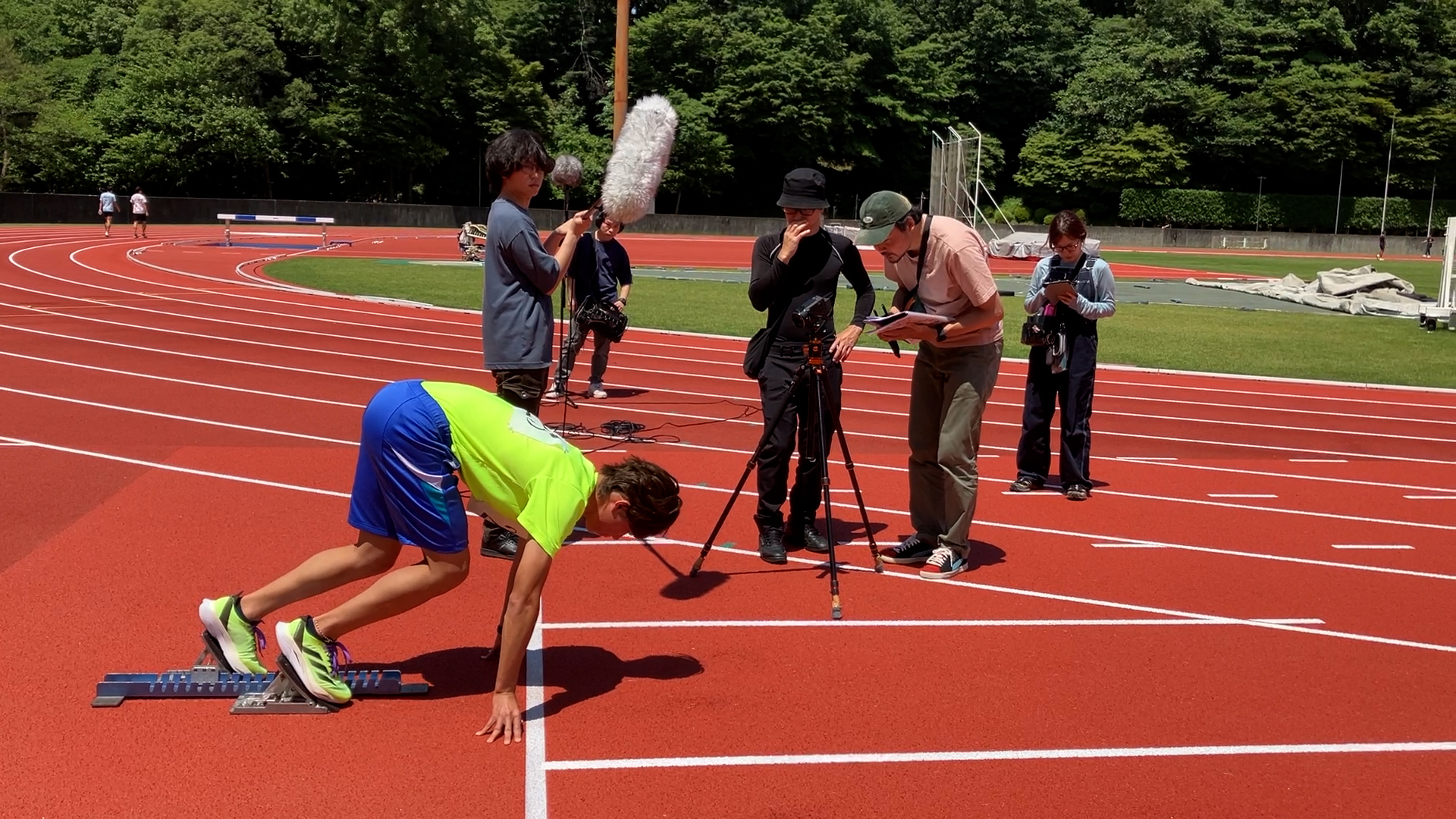 撮影は昨年の6月に本学多摩キャンパス陸上競技場で行われ、主人公の一人、小宮が通う西沢高校陸上部のシーン等、場面に合わせて撮影が行われました。