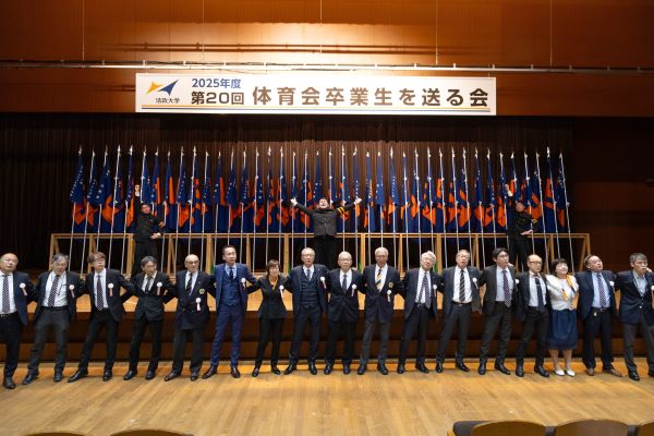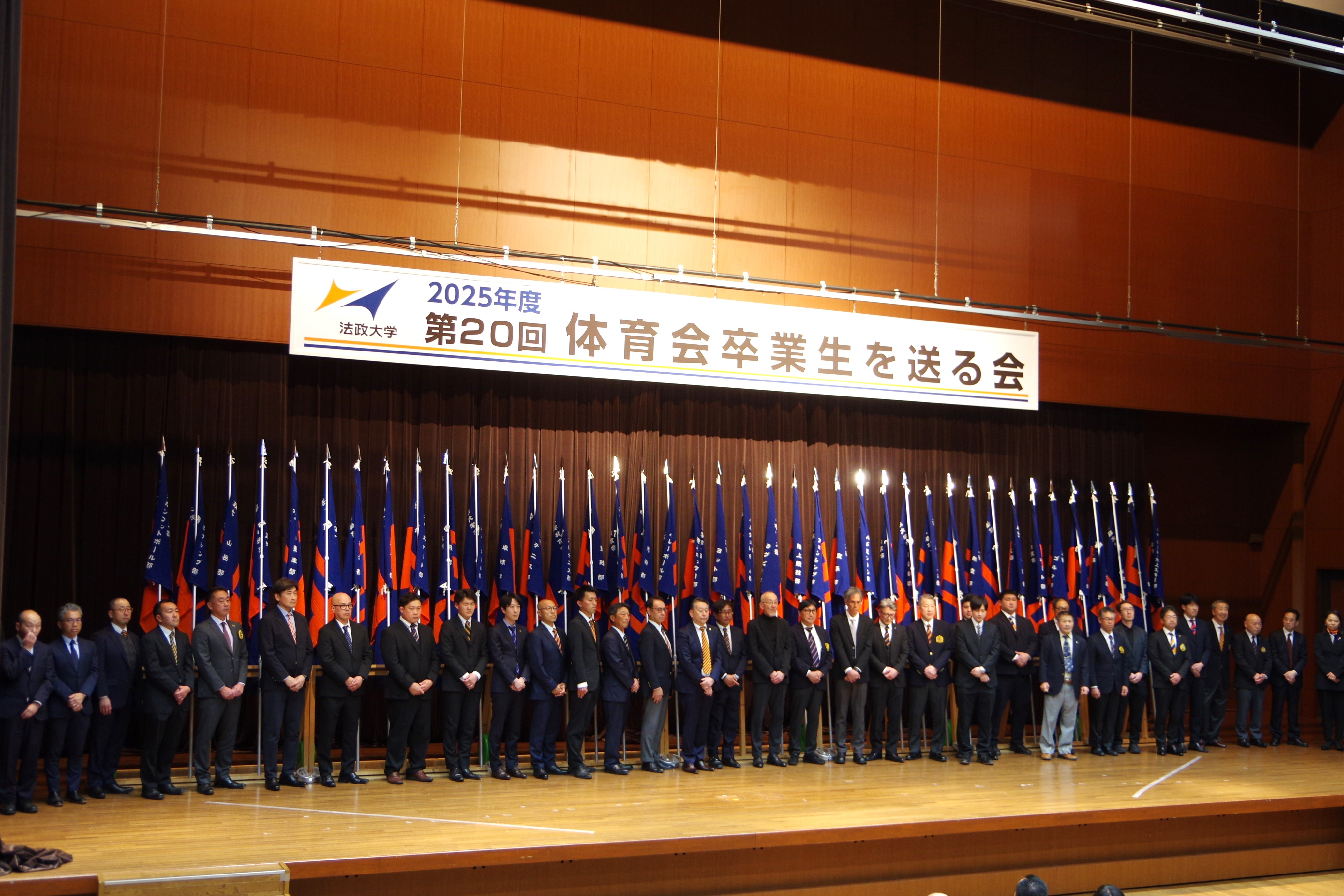 2026年3月23日(月)、法政大学薩埵ホールにて第20回体育会卒業生を送る会が行われました。会は法政大学と体育会卒業生組織の法友体育会の共催で実施され、当日は、多くの卒業生、指導者や体育会OB・OGが集いました。