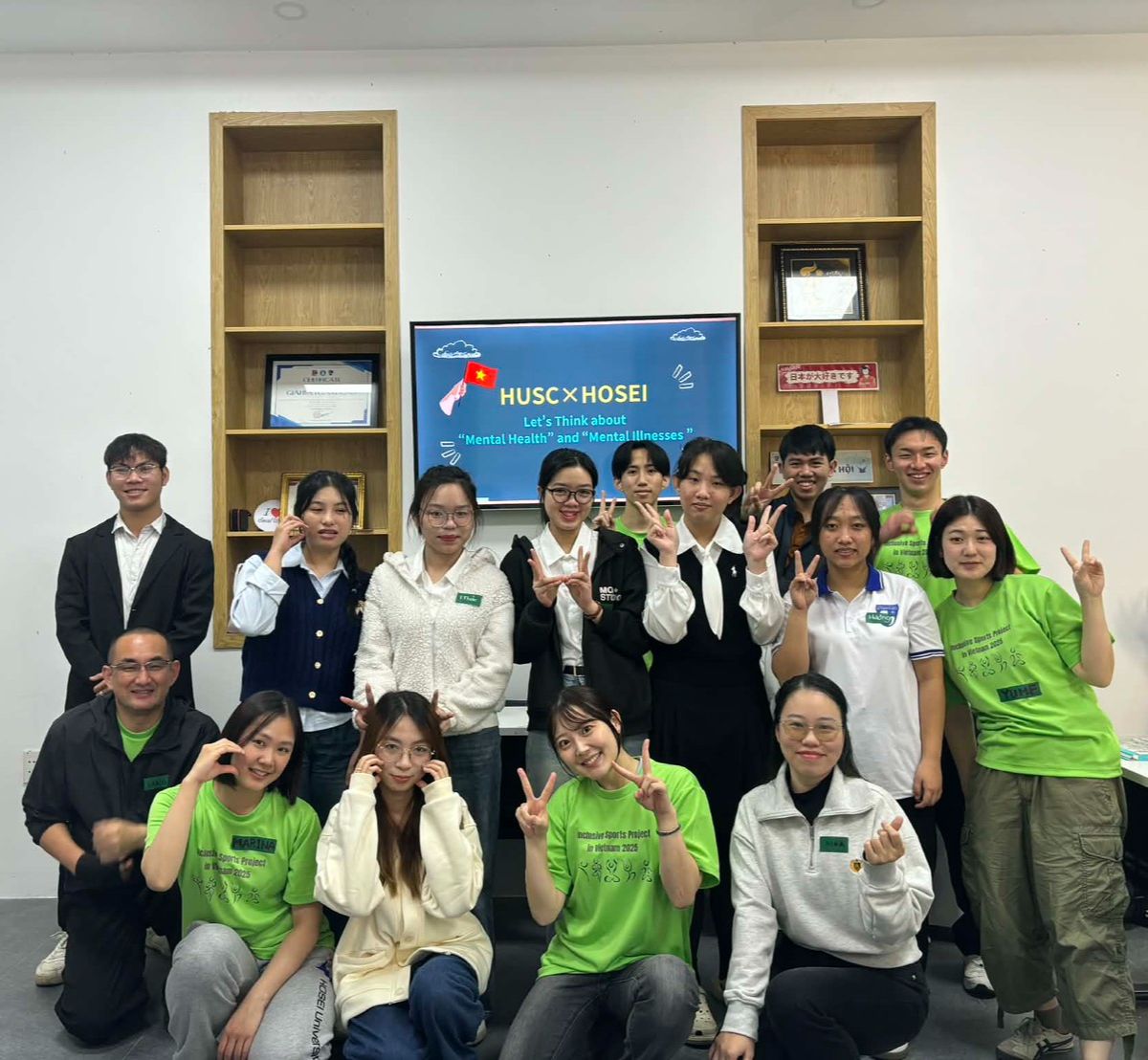 一つ目は「フエ科学大学交流イベント」です。クイズアプリ「Kahoot!」を用い、福祉をテーマにしたクイズ大会を日越混合チームで行いました。両国の福祉制度の現状や精神障がいへの理解など、異文化交流を通じて福祉とメンタルヘルスに関する知識を相互に深めることができました。