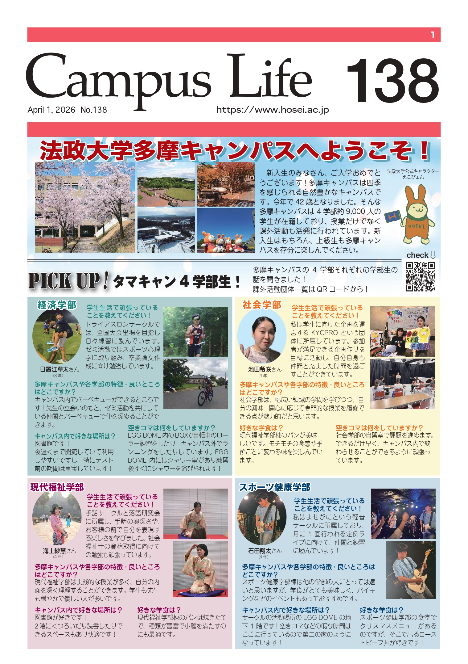多摩キャンパス広報紙「Campus Life 138号」を発行しました。