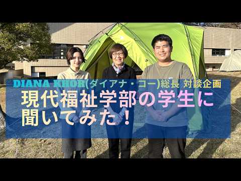 2025年12月1日に、法政大学総長のDiana Khor(ダイアナ・コー)が学生の声を聞くために、多摩キャンパスを訪れました。今回は2024年度に「自由を生き抜く実践知大賞・大賞」を受賞した現代福祉学部・水野雅男ゼミの学生にインタビューを行いました。水野ゼミで取り組んでいる『CAMP in Campus』について、活動の中で意識していたことや見えてきたこと、なぜこのゼミを選んできたかを聞いていく中で、「法政らしさ」が随所に感じられました。緑の残る多摩キャンパスで行われたインタビューについて、その様子をぜひ動画でご覧ください。