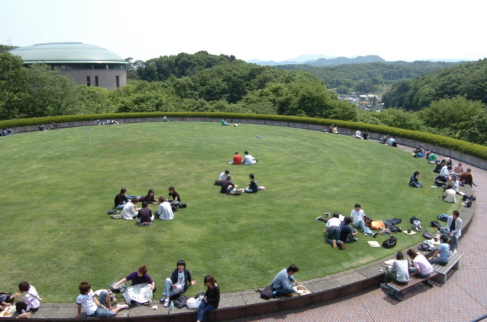 通称「円芝」として学生に親しまれており、空きコマの時間には学生が談笑したりピクニックをする姿も見られます。学生の憩いの場として人気のスポットです。