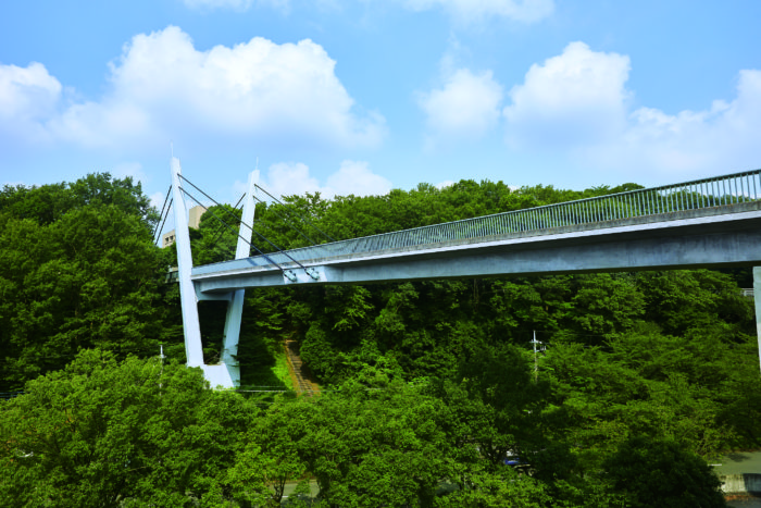 多摩キャンパスのシンボルのひとつ、Vブリッジを3か所からお届けします。四季折々の表情が楽しめるVブリッジは、写真映えする人気のスポットです。