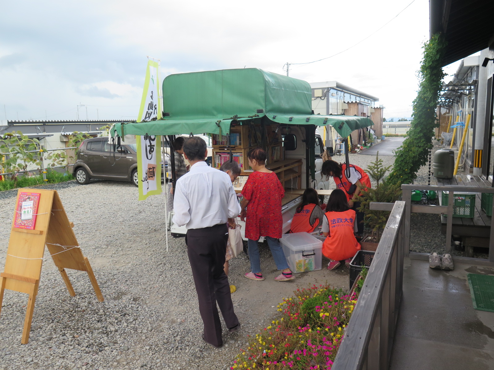 ・1班は、北集会場前で移動図書館の整理、貸出。運営されているボランティアさんの話では、日に日に幅広いジャンルの本が読まれ、リクエストも多くなったそうです。