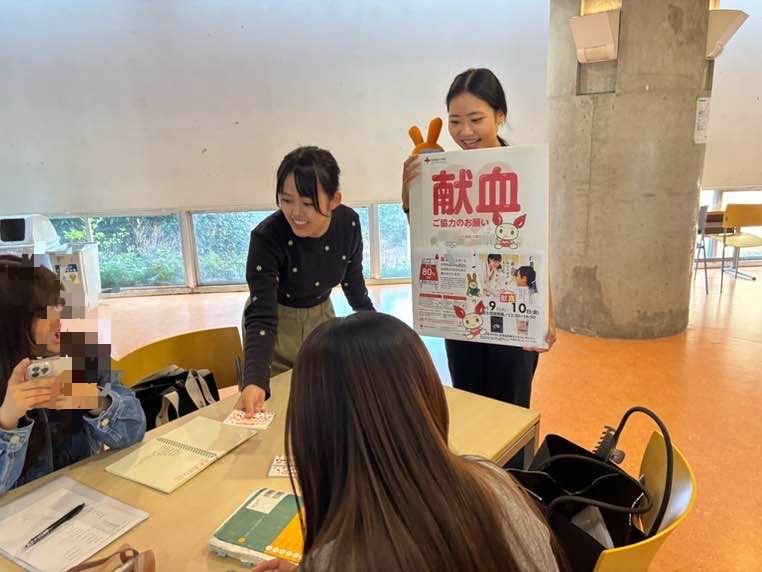 今回の献血企画は10月9日と10日の2日間にわたって開催されました。今回も日本赤十字社様のご協力の元で企画が行われ、VSPはこちらの広報をする形となりました。 1週間ほど前から当日まで、ティッシュ配りや看板の掲載による企画の周知が行われ、当日は会場へ多くの方にお越しいただきました。また当日までのVSPの企画参加者の合計は34名となり、実際に献血をした学生もいました。多くの学生が、企画を通じて献血に興味を持ってくれるように、今後の広報活動にも尽力していきたいです。(ボランティアセンター学生スタッフVSP 経営学部経営戦略学科1年 小松 彪志)