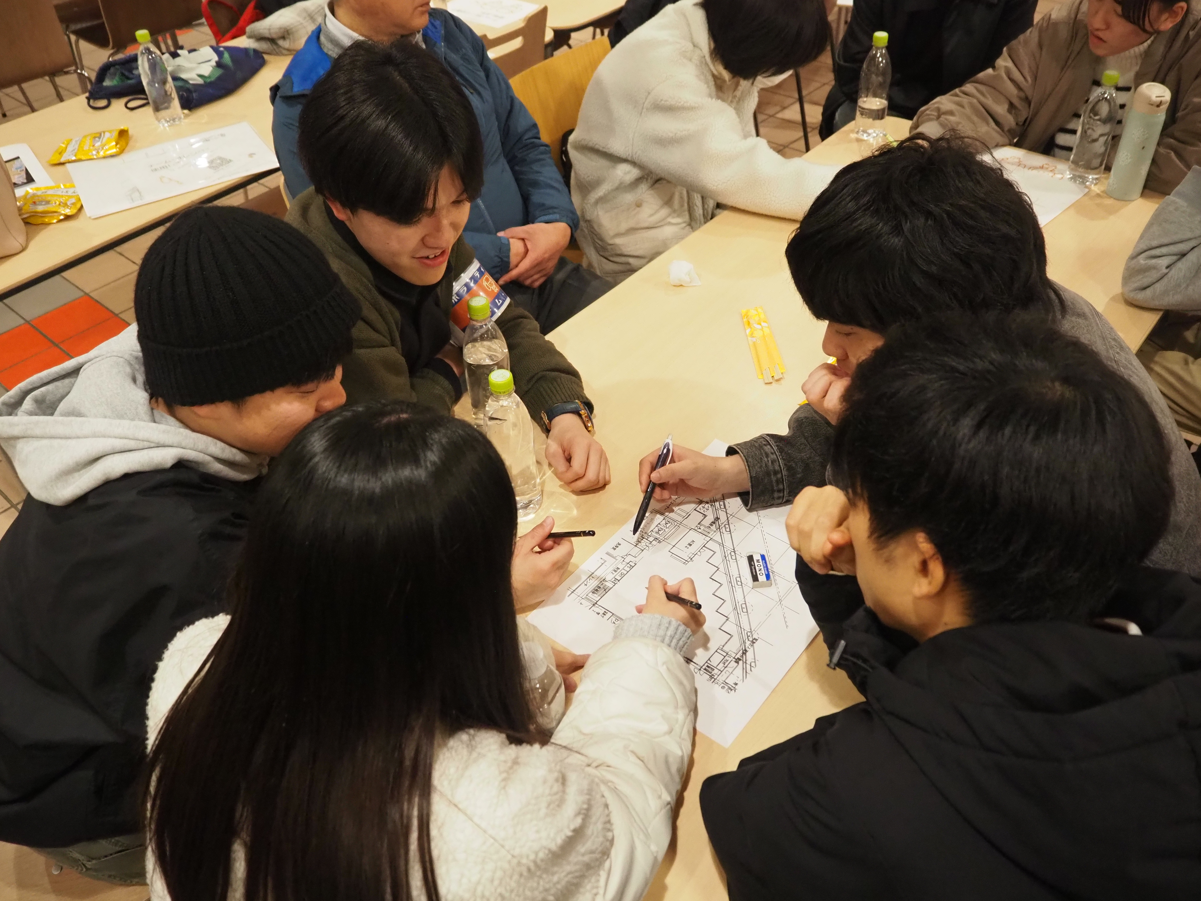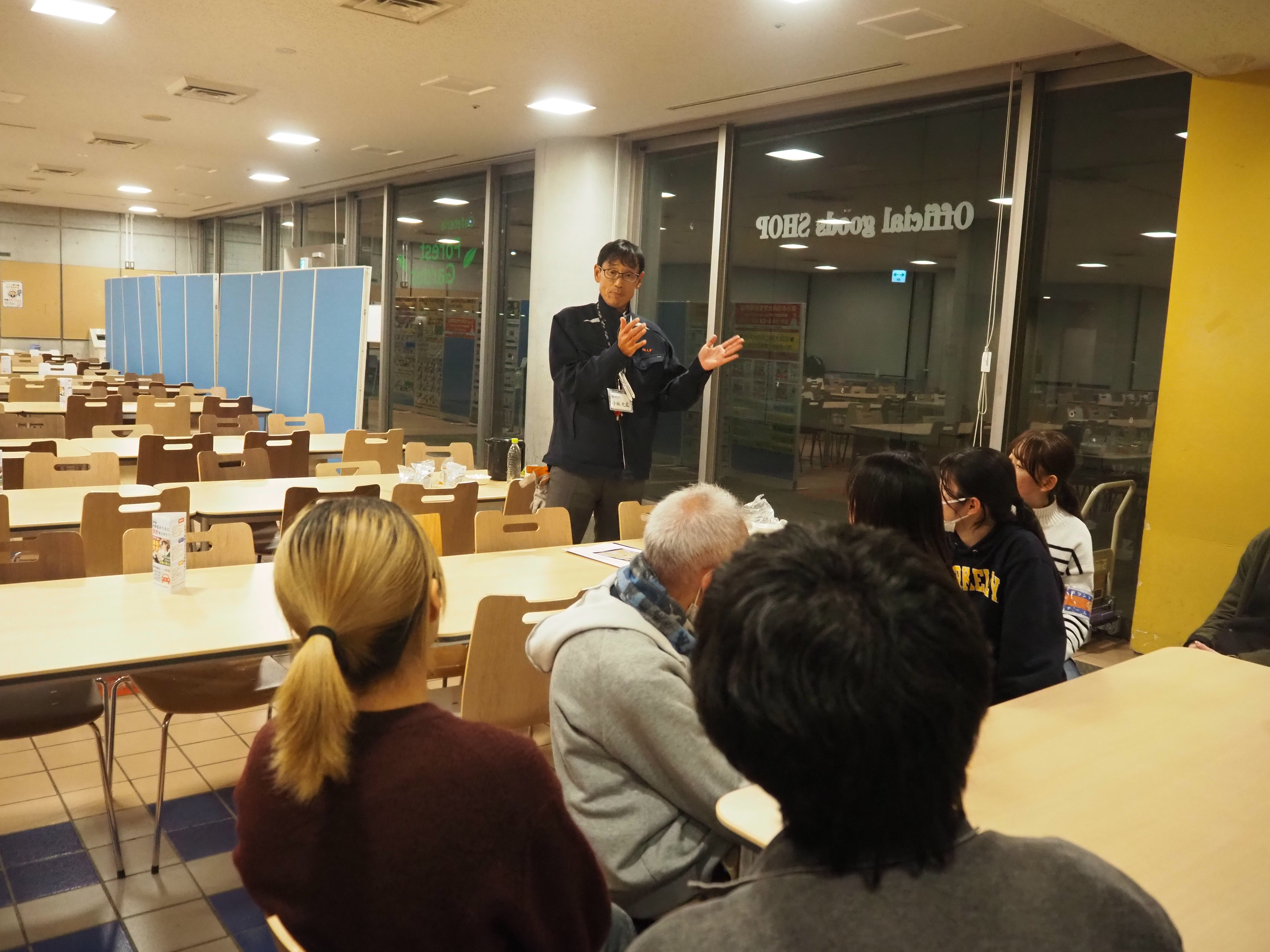 今回の非常食企画は、「地震が発生し、学内で避難生活を送る中で非常食を配布する状況」を想定して実施しました。本企画では、発災時の適切な行動や非常食の役割について理解を深め、実際の避難生活を具体的にイメージすることを目的としました。はじめに、本学防災関連の担当部署である総務部総務課の小林次長による講話を通じ、災害発生時に取るべき行動や、非常食の重要性について学んだのち、防災倉庫を見学し、大量の備蓄品をどのように管理・配布するのか、また配布場所や配布方法についての理解を深めました。あわせて、災害時のトイレの使い方についても説明を受け、凝固剤を用いた処理方法を学びました。また、班ごとに分かれて非常食の配布導線や置き場所を検討し、いかにスムーズに配布できるか?についてシミュレーションを行い、小林次長に提案を行いました。最後に、レトルトご飯やアルファ化米を実際にお湯や水で調理・試食し、非常時の食事について体験的な学びを実施しました。本企画を通して、非常食の実態や配布の難しさを知るとともに、災害時に備える意識を高めることができる貴重な機会となりました。(ボランティアセンター学生スタッフチーム・オレンジ 法学部政治学科1年 吉澤 遙)