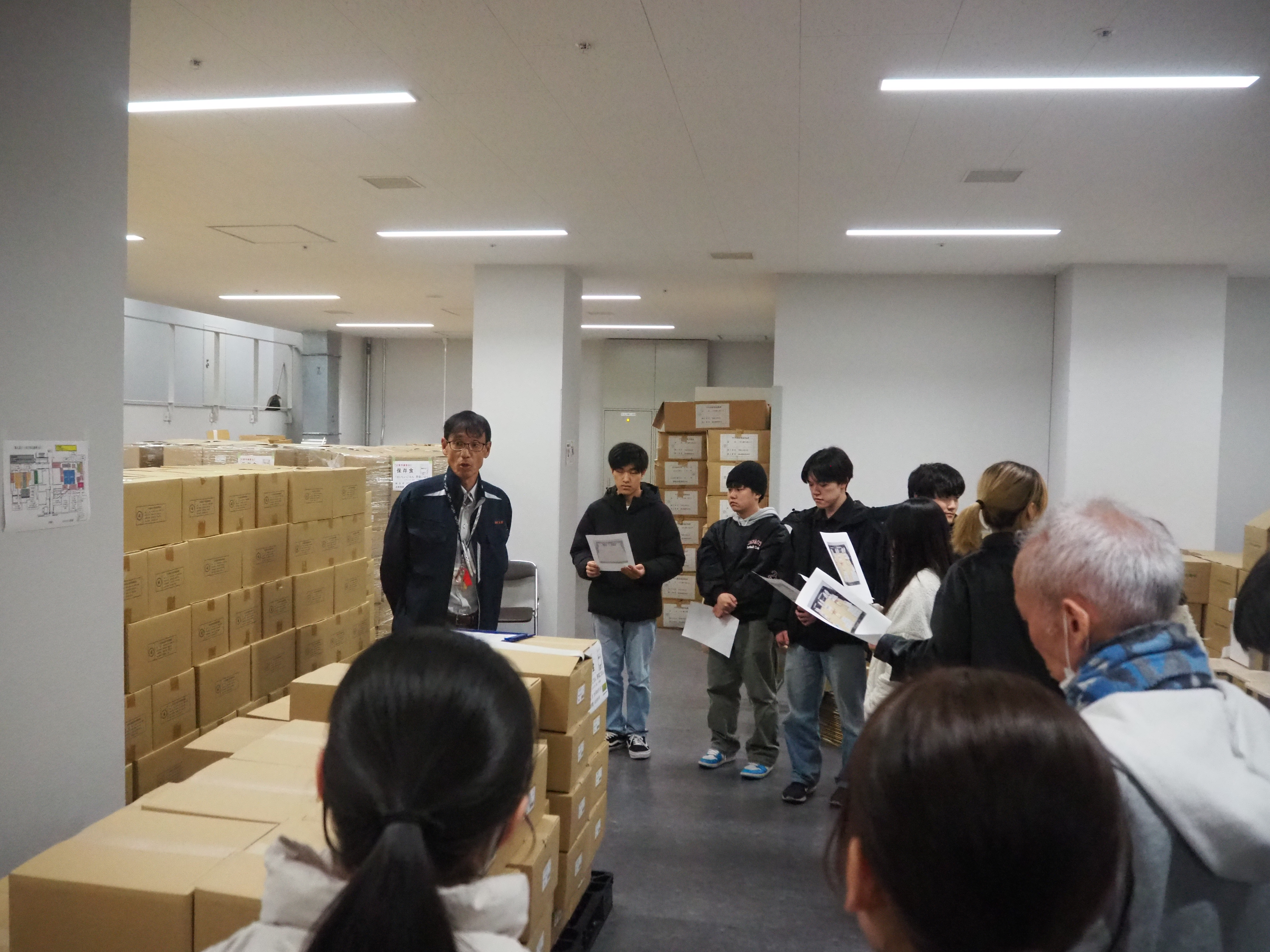 今回の非常食企画では、小林次長のお話を通して災害発生時に取るべき行動や非常食の重要性について学ぶことができました。特に、非常食は「備えて終わり」ではなく、実際にどのように配布するかまで考えておく必要があるという点が印象に残りました。その後の防災倉庫の見学では、想像以上に多くの備蓄品が保管されており、これらを限られた人員と時間の中で、どこで、どのように配布するのかが大きな課題であると感じました。平常時には意識することの少ない配布場所や導線について、事前の準備が重要であることを実感しました。また、災害時のトイレの使い方について説明を受け、排泄物を凝固剤で固めて処理する方法も知りました。食事だけでなく、トイレなど生活に直結する問題への備えも、避難生活を続ける上で欠かせないものであると感じました。今回の企画を通して、災害時の非常食や備蓄は身近な問題であり、日頃から具体的な場面を想定して備えることの大切さを学ぶことができました。(ボランティアセンター学生スタッフチーム・オレンジ 法学部政治学科1年 吉澤 遙)