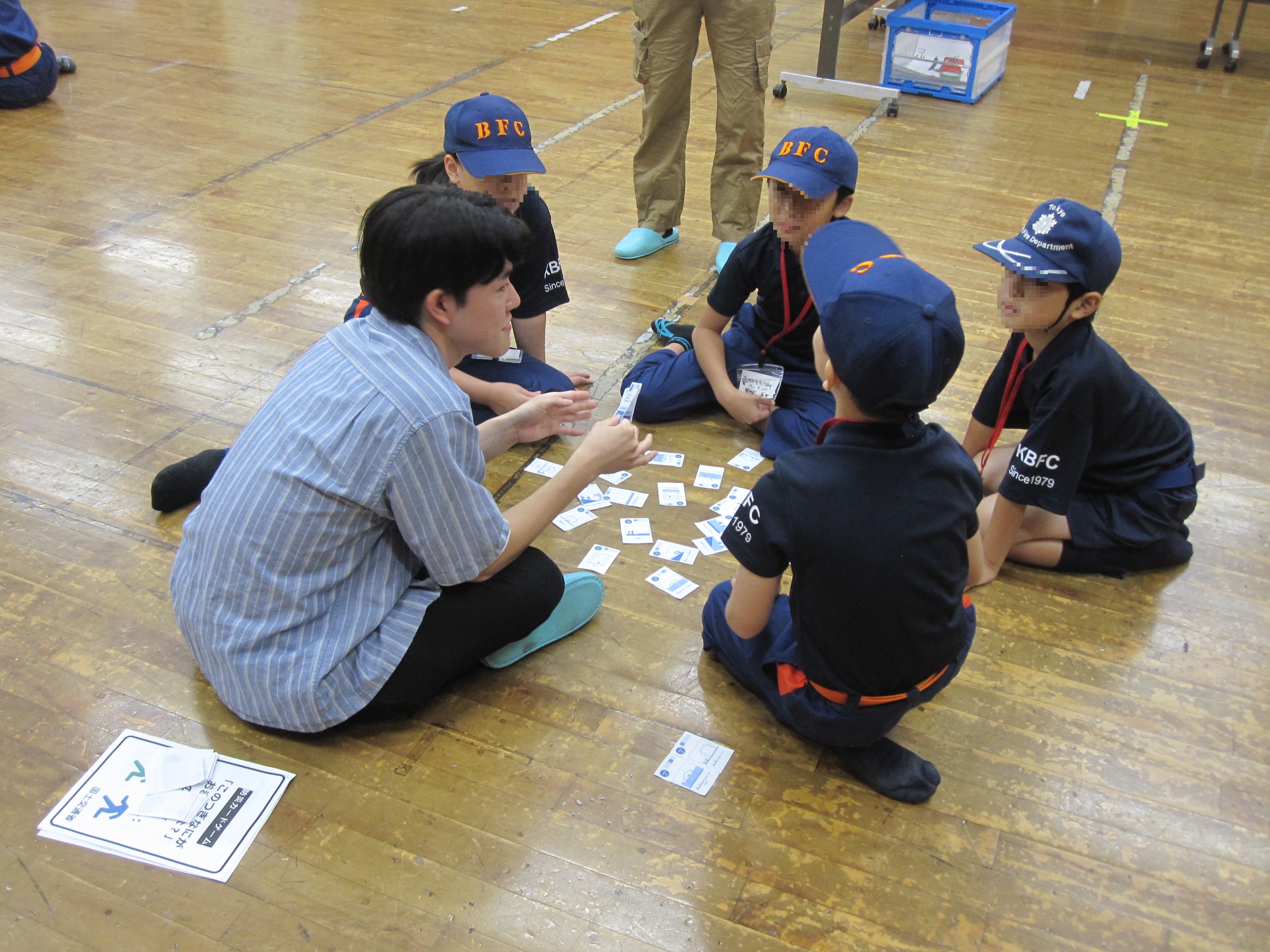 麹町消防署にて日曜日に定期的に行なわれている麹町少年消防団の訓練に、外部からの講師という形で参加した。また、我々と同じような外部講師の立場として、という方もいらしており、そちら側では英語と防災を絡めた企画がなされていたようであった。今回は、小学生向けと中高生向けで異なる企画を用意した。小学生に向けては「つぎなにがおきるかな」というカードゲーム形式のコンテンツを行なった。数名ずつの班に分かれてかるたや七並べのような身近な遊びの中で、津波や地震の知識をつけていく事が出来る物である。中高生に向けては「ダイレクトロード」という、グループで話し合いをし、その結果に基づいて次に行なう行動を決めてゆくという内容のコンテンツを用意した。全く知らない土地で、限られた時間と情報の中で、生き残るための選択を行なう。というなかなか経験できない実戦的な学びを得られるような物である。チーム・オレンジとして小学生と関わる機会はこれまで少なかったほか、今回選んだゲームは2種類とも初めて扱うゲームであったため、今後の団体に活かしていけそうな気づきや経験を得ることが出来た。(ボランティアセンター学生スタッフチーム・オレンジ 人間環境学部人間環境学科3年 西山 惺)
