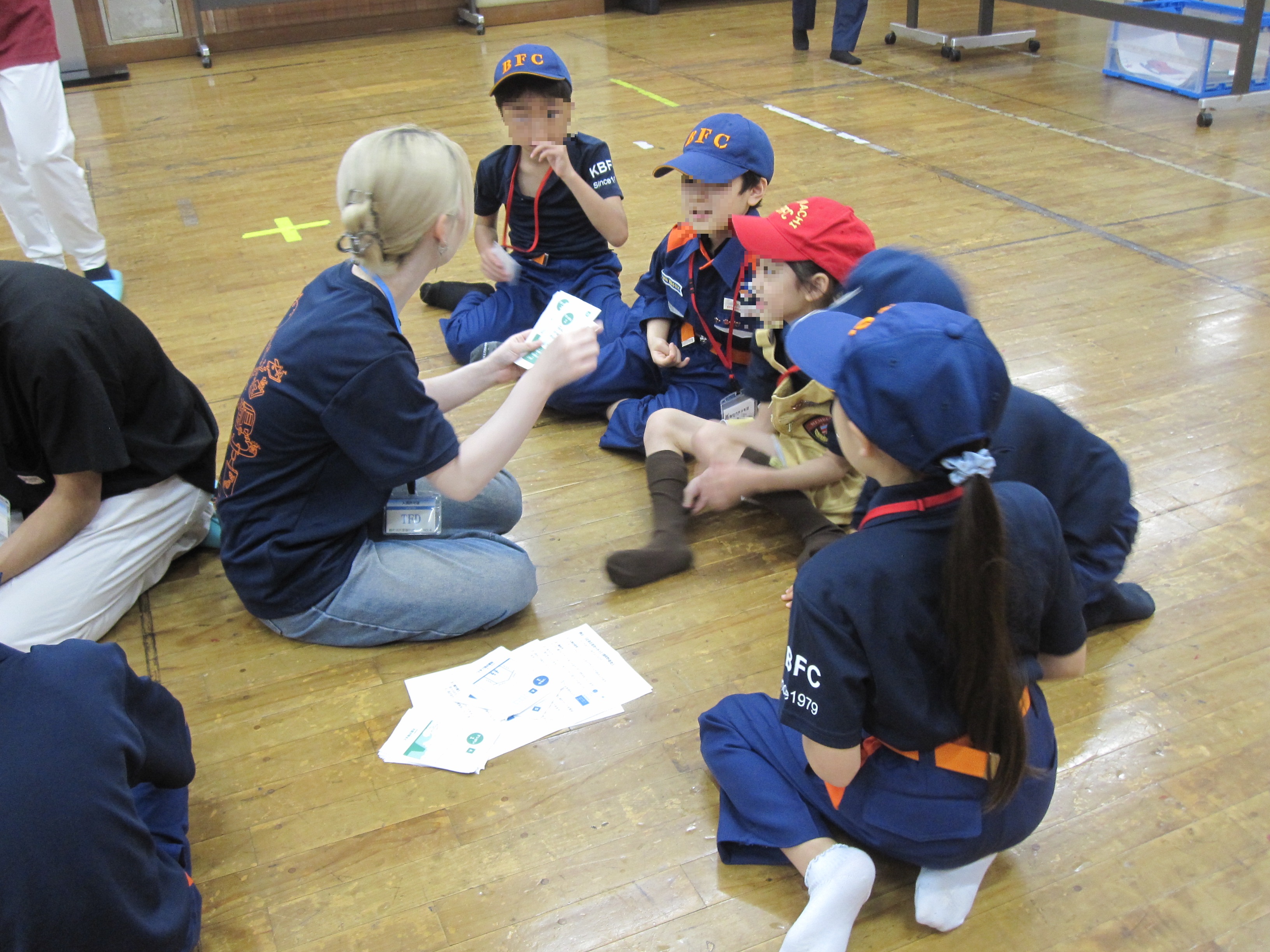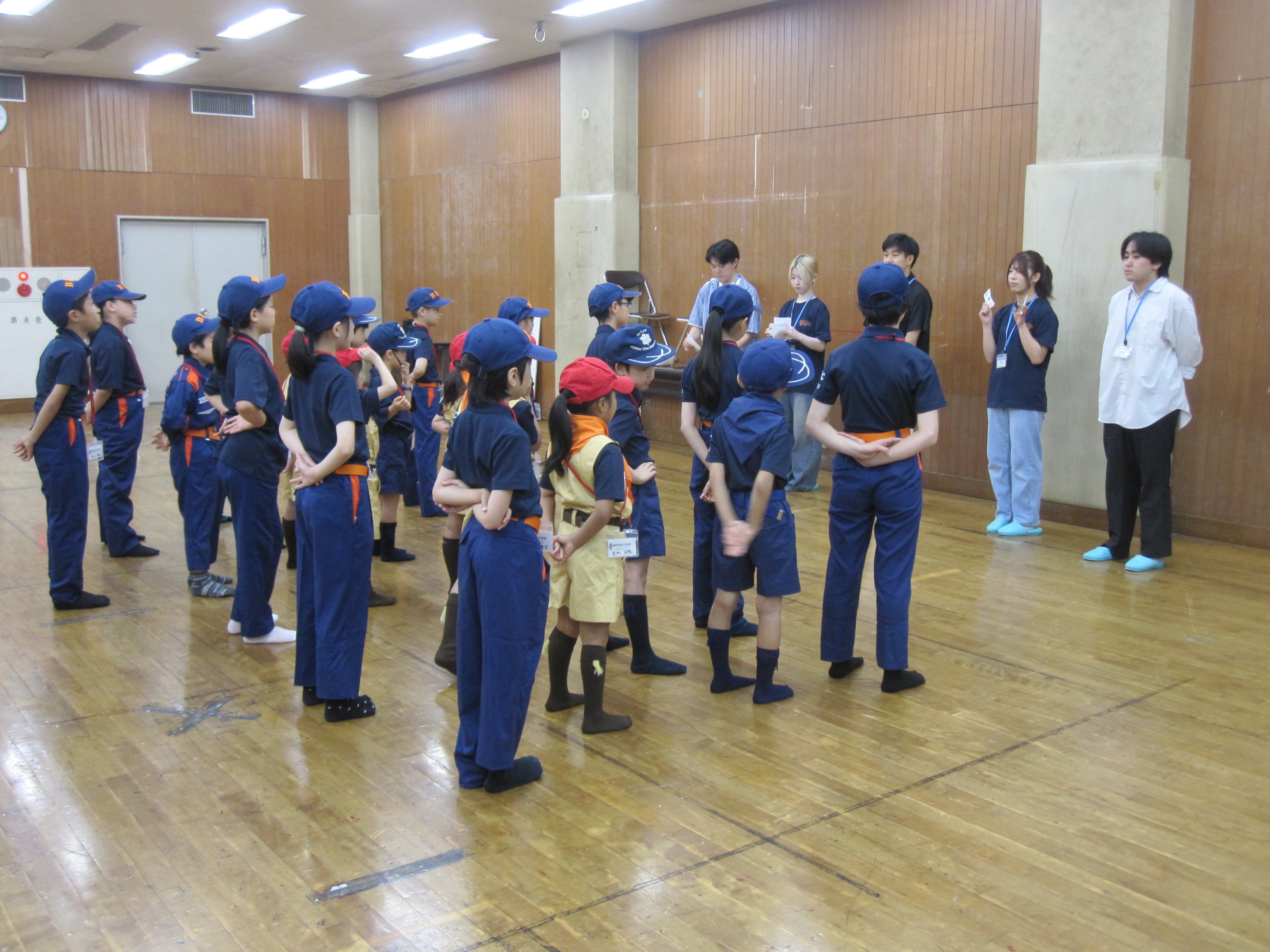 小学生とこういった形で関わるのは初めてだったため、自分ははじめは緊張しており、小学生もどうしたらよいかよく分からずにいるような感じだった。しかし、試行錯誤する内に打ち解け、互いに初めて知る事が多くある、良い機会であった。これは今後に活かしたいと思った。また、今回お邪魔した消防少年団は、普段からさまざまな内容で災害時のことや防災関連のことを学んでいるという事だった。