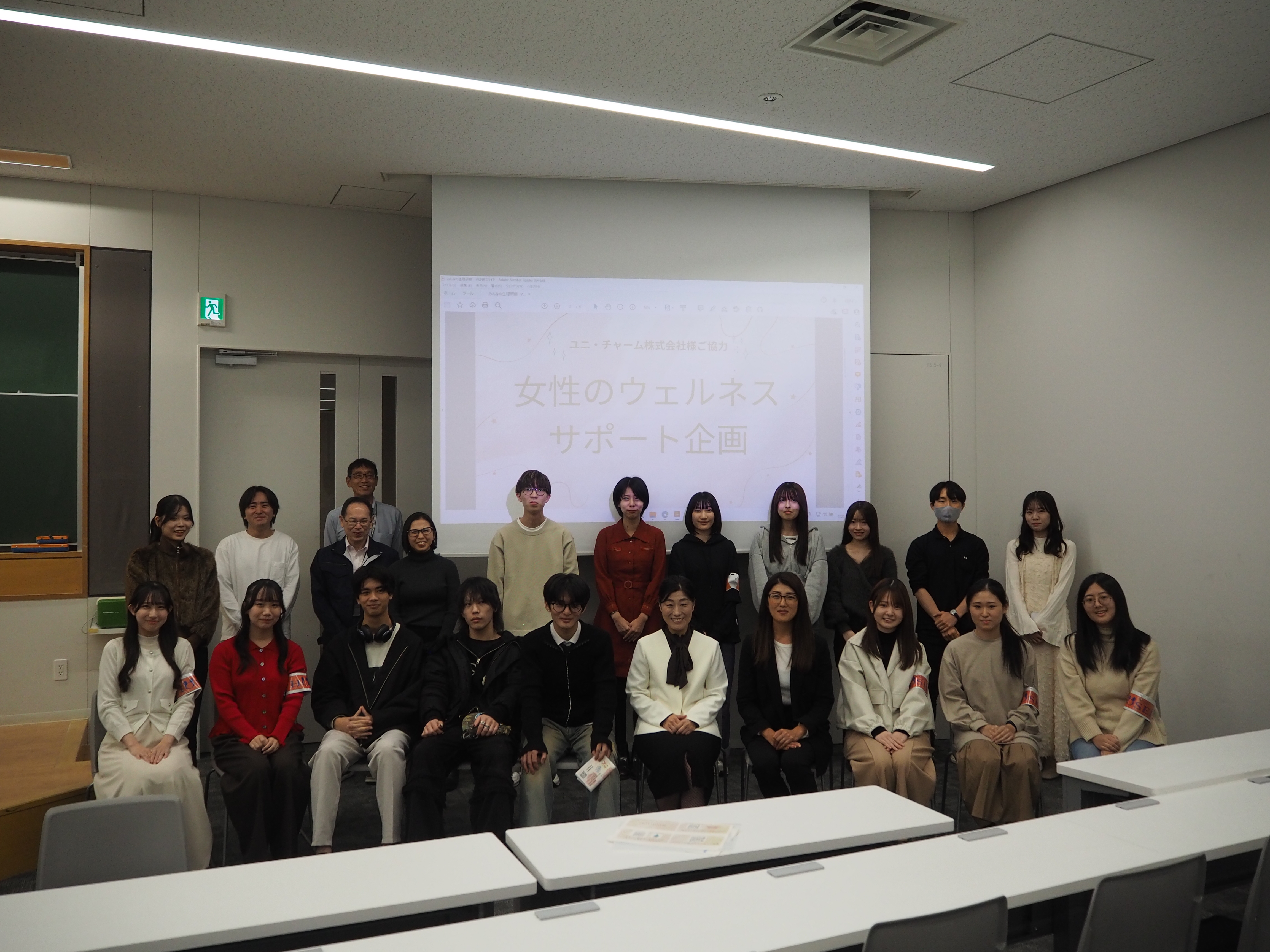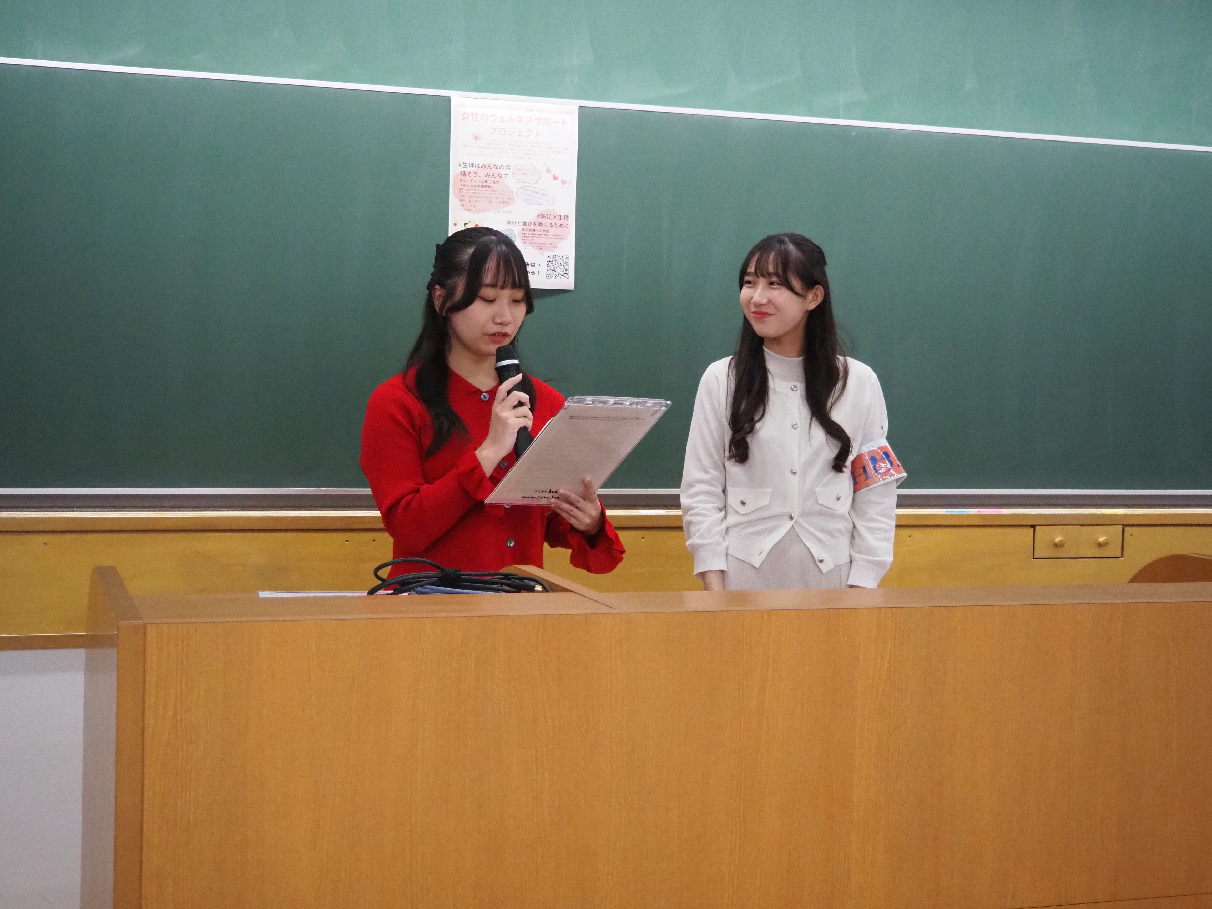 ウェルネス企画を通して、生理に対する男女間の認識の差を改めて実感するとともに、その差を少しでも縮めるきっかけを作ることができたのではないかと感じました。ユニ・チャーム(株)様の「みんなの生理研修」では、男性の参加者も多く、質疑応答の場面では女性以上に積極的に発言する姿が印象的でした。その一方で、防災訓練に向けたチラシ配りの際には「自分は男性だから関係ない」と断られてしまうこともあり、まだまだ意識の差があるなと強く感じました。このような前向きな反応と消極的な反応の両方を知ることができたのは、この企画を実施したからこそだと思います。企画者として携わる中で、多くの気づきと学びを得られた有意義な時間となりました。(ボランティアセンター学生スタッフVSP 法学部法律学科1年 佐々木 菜乃葉)